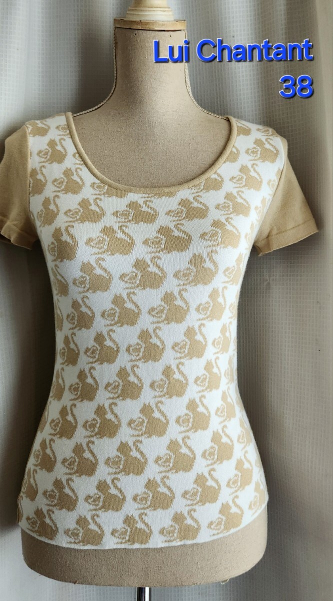 - 大変美品 Lui Chantant 可愛い猫柄コットンニット 細身 ベージュ