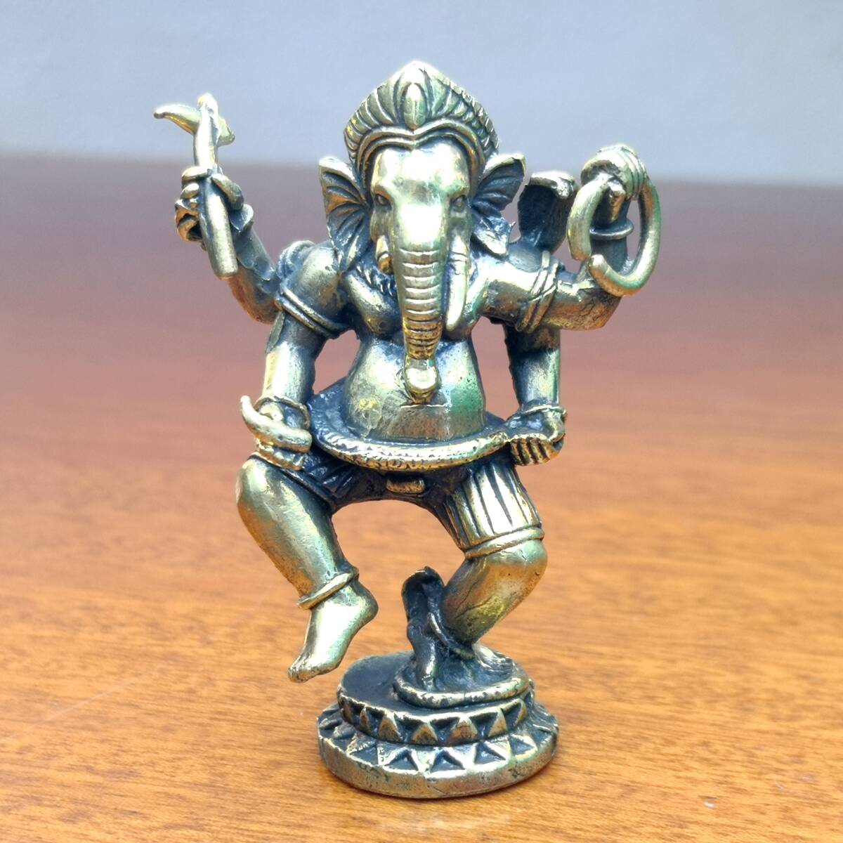 - インド 金運と商売繁盛の神様 ガネーシャ神の立像 真鍮製 G