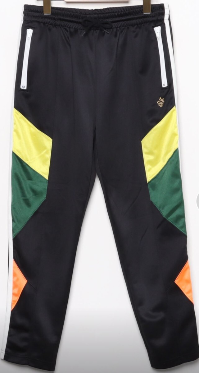 > ALDIES アールディーズ ジャージ トラックパンツ Lサイズ マルチカラー クレイジーパターン 黒 黄 緑 赤 検索 bkb カゲロウ スキーム
