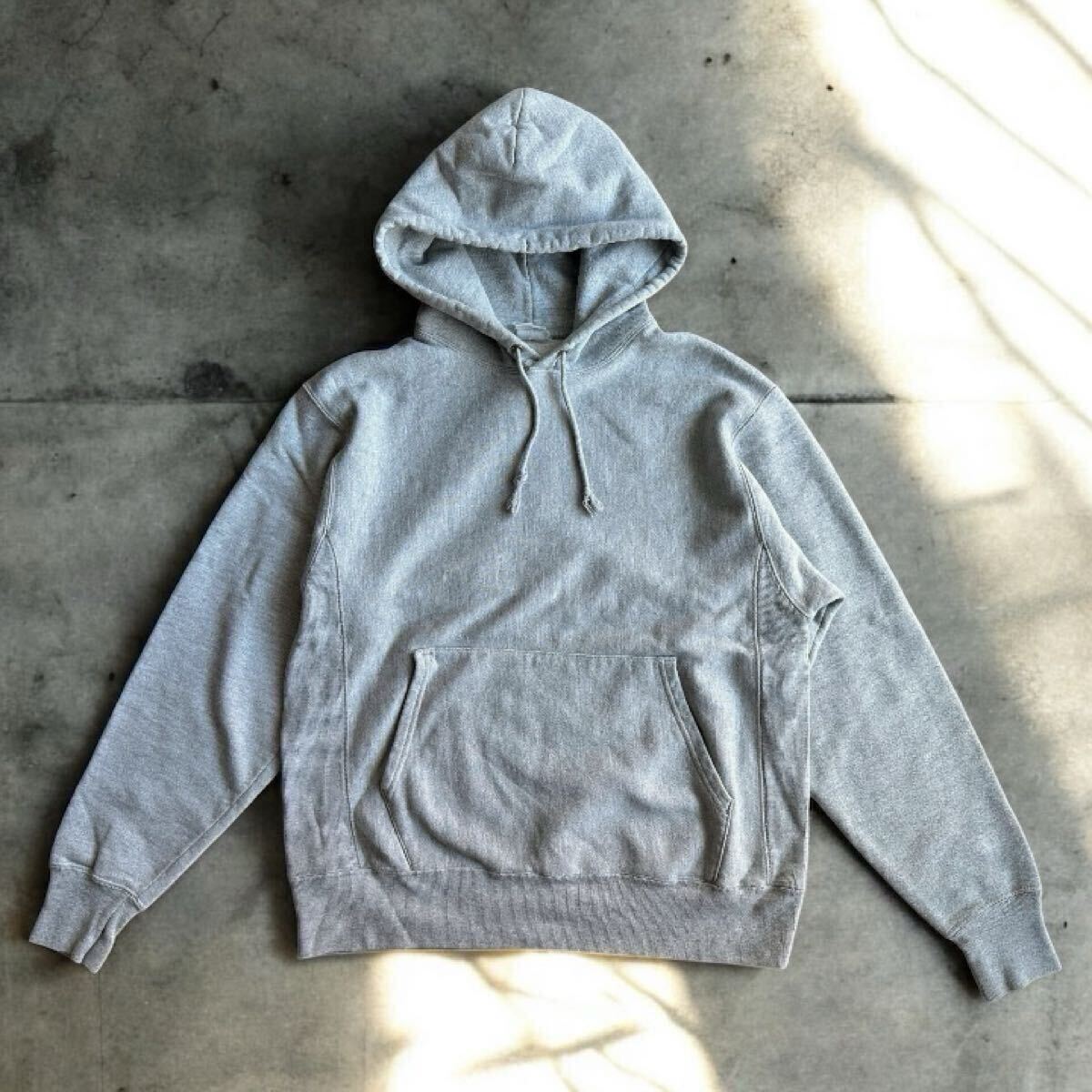 > 雰囲気系 古着 リバースウィーブ風 無地 パーカー グレー フーディー スウェット 霜降り USA風 メンズ L相当 プルオーバー プルパーカー