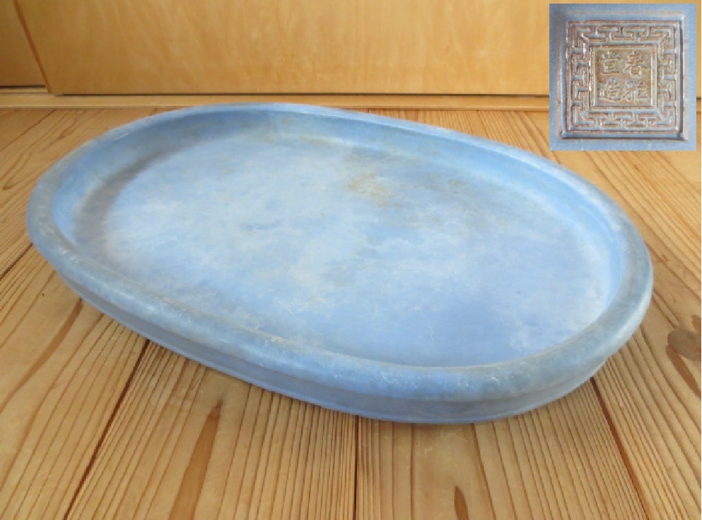 - 【艸】 R7/07/10-5 均窯水盤 春雅堂造 水盤 水石 盆栽 中国古玩 幅45センチ 水石 9jul5