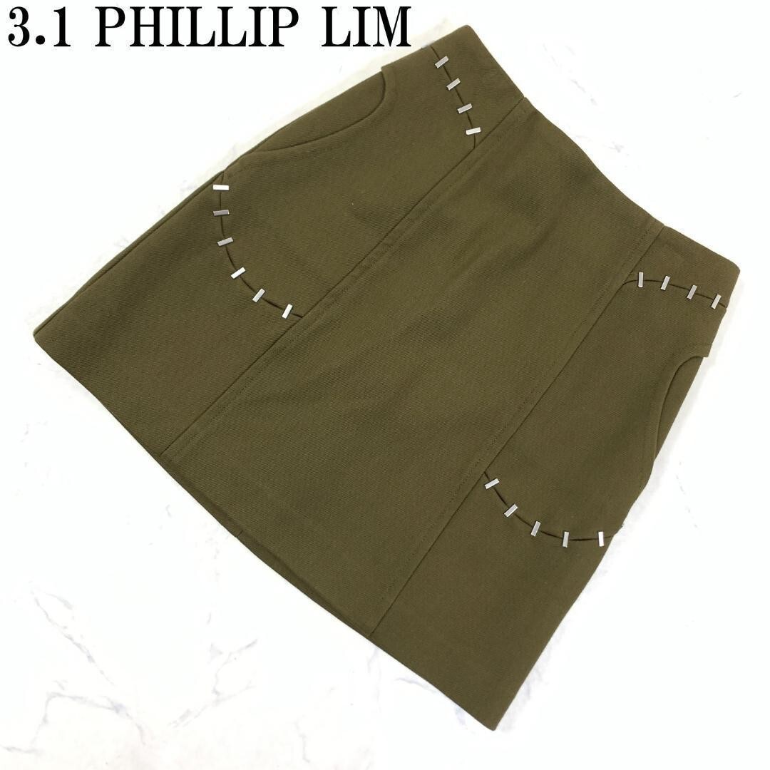 - LA6416 フィリップリム デザイン台形スカート コットン カーキ 3.1 PHILLIP LIM ウール 裏地シルク ポケット有 切替デザイン 深緑 0