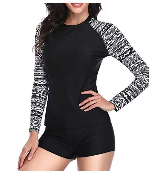 - 【S~XL】女性用ショーツ付ツーピース水着,ヴィンテージプリントラッシュガード,レトロプリント,サーフウェア,長袖※NO3