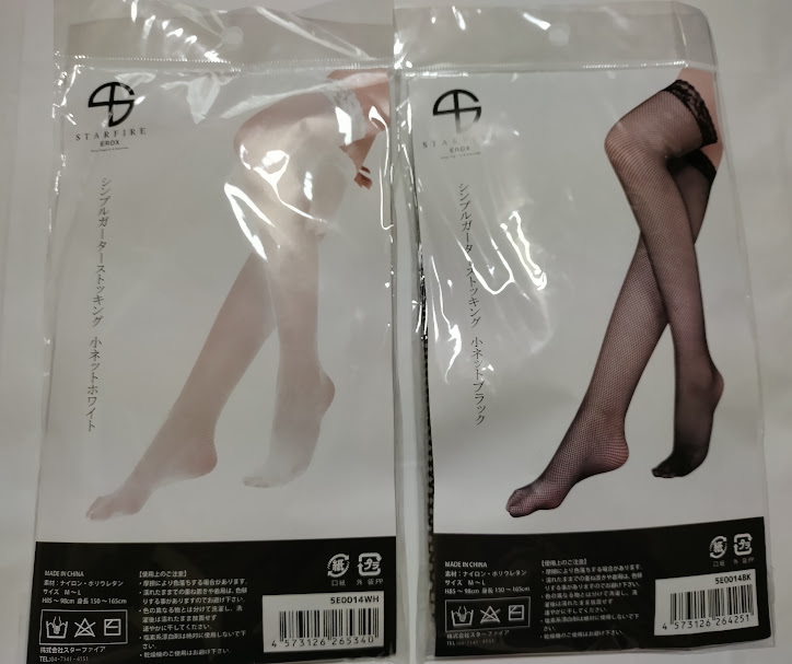 - シンプルガーターストッキング小ネット ホワイト&ブラック ストッキング2枚セット