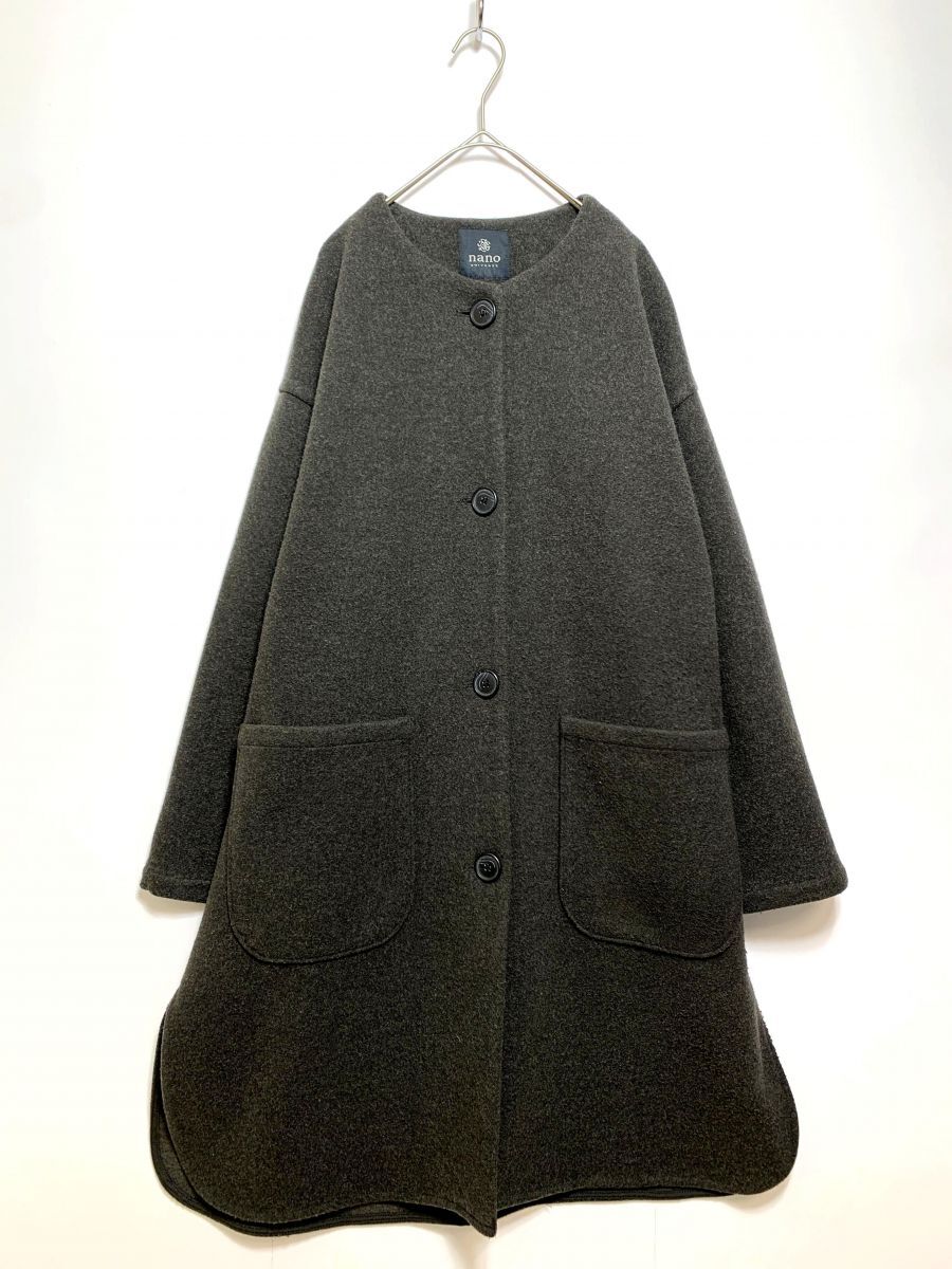 - nano universe ナノユニバース 定価11000円 ニットメルトン ノーカラー コート sizeF/チャコール ◆■