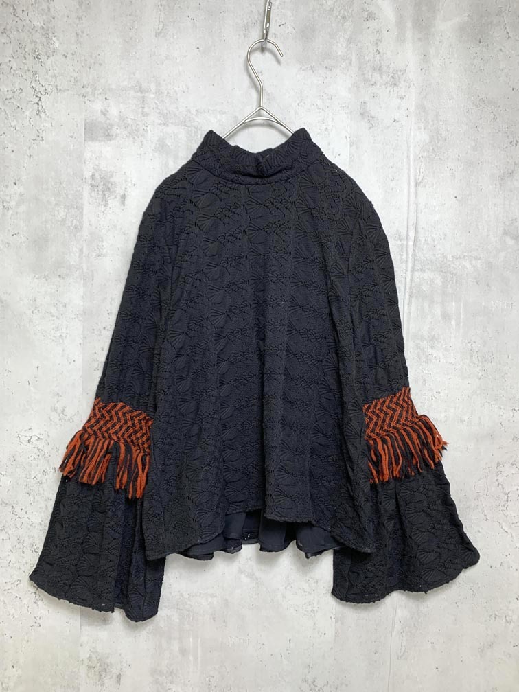> ゆうパケットOK EBONY エボニー E19AW/T-02 レースフリンジ カットソー ブラウス 黒 ■■◎ ☆ fba7 レディース