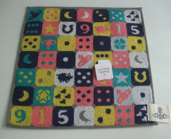 - Vivienne Westwood ヴィヴィアン・ウエストウッド チェック dice ダイス サイコロ柄 タオル ハンカチ 未使用品 グレー系