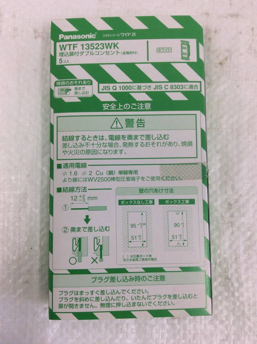 - ★Panasonic★ パナソニック WTF13523WK 埋込扉付ダブルコンセント 金属枠付 ホワイト 5個入り コスモシリーズ ワイド21