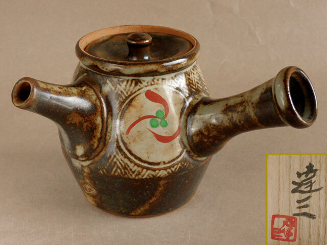 - 人間国宝 島岡 達三 象嵌 赤絵 小急須