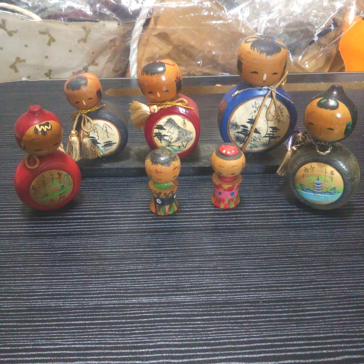 - 昭和レトロレア物 こけし 置物 伝統こけし飾りと中国こけし人形ミニペア計5個まとめてです。