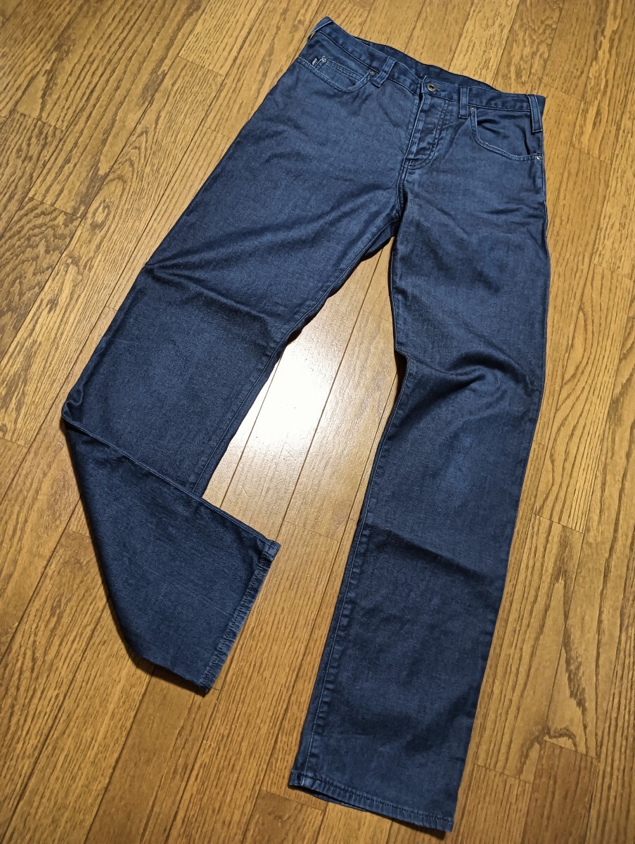 - ARMANI JEANS アルマーニ 希少アフリカコットン デニムパンツ W28 イーグル モチーフ 金具 革パッチ ボタンフライ メンズ