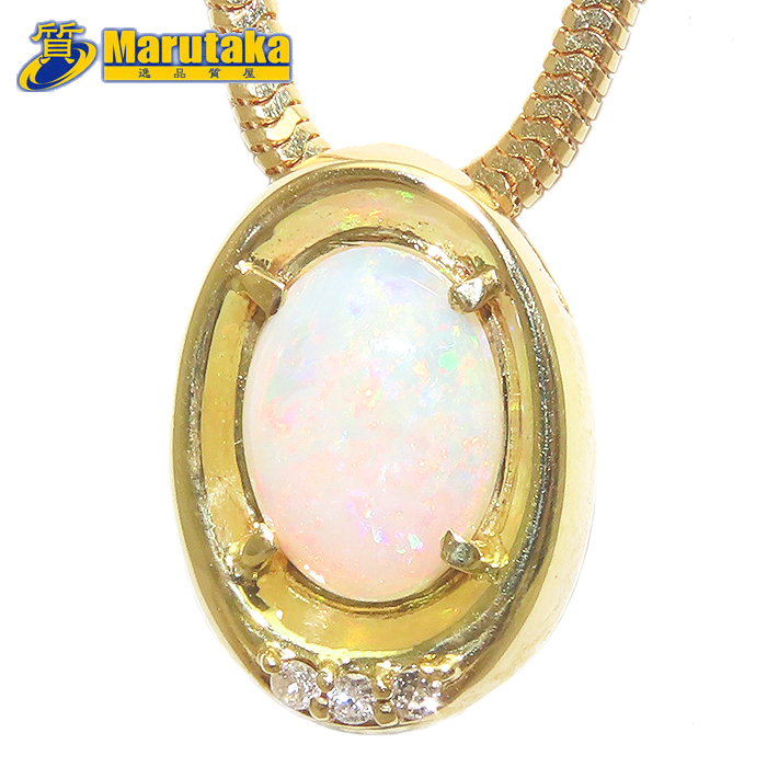 > オパール ダイヤモンド ネックレス 50cm K18 鑑別書 YG イエローゴールド 8.0g ホワイト 逸品質屋 丸高 尼崎 Opal
