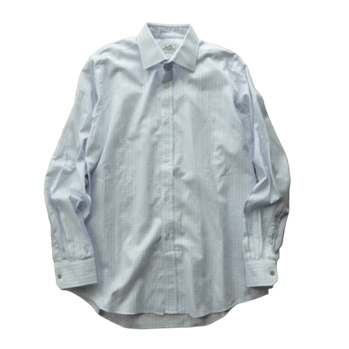 - エルメス (HERMES)コットン チェック ドレス シャツ 長袖 42 ブルー×ホワイト ウェア ソルド品 メンズ(中古)