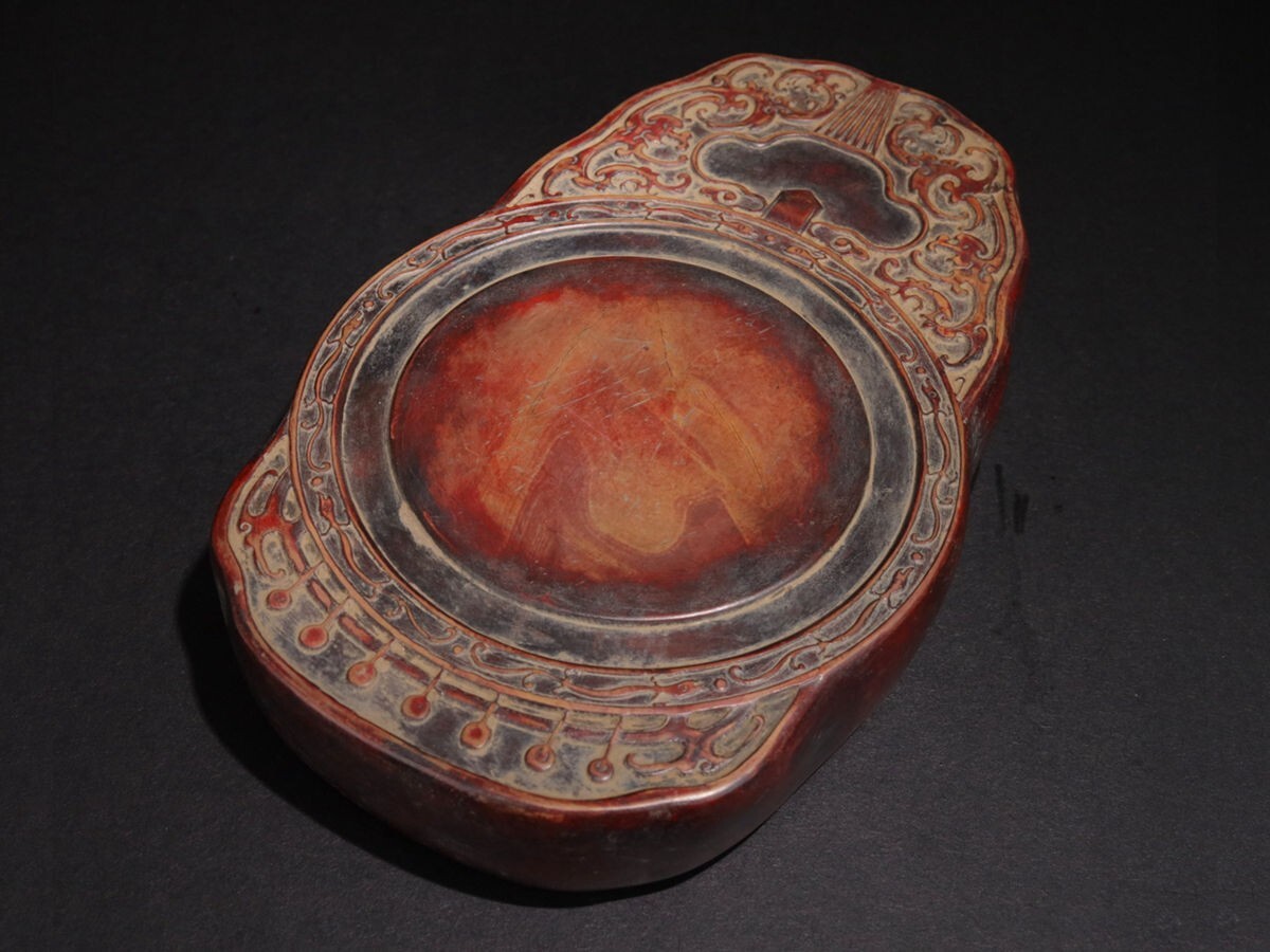 - 古びた蔵『清代 紅絲石彫り 琴韻文房紅絲硯 林正青銘』極細工 文房具 書道具 古賞物 古美術 中国古玩