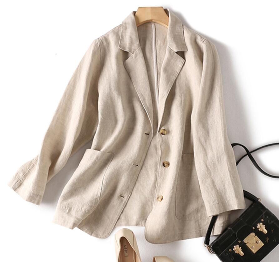 - 新入荷~リネンアウター リネンジャケット レディース テーラードジャケット オフィス カジュアル 薄手 綿麻風 プリングコート~麻色