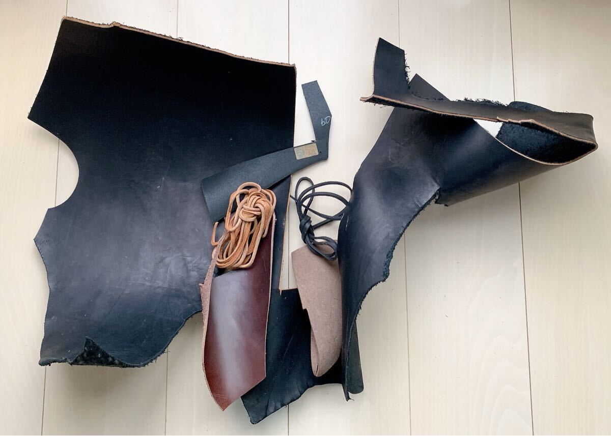 - レザー ハギレ 牛革 本革 レザー 半端革 レザークラフト サドルレザー ブラック レザーレース 皮ひも