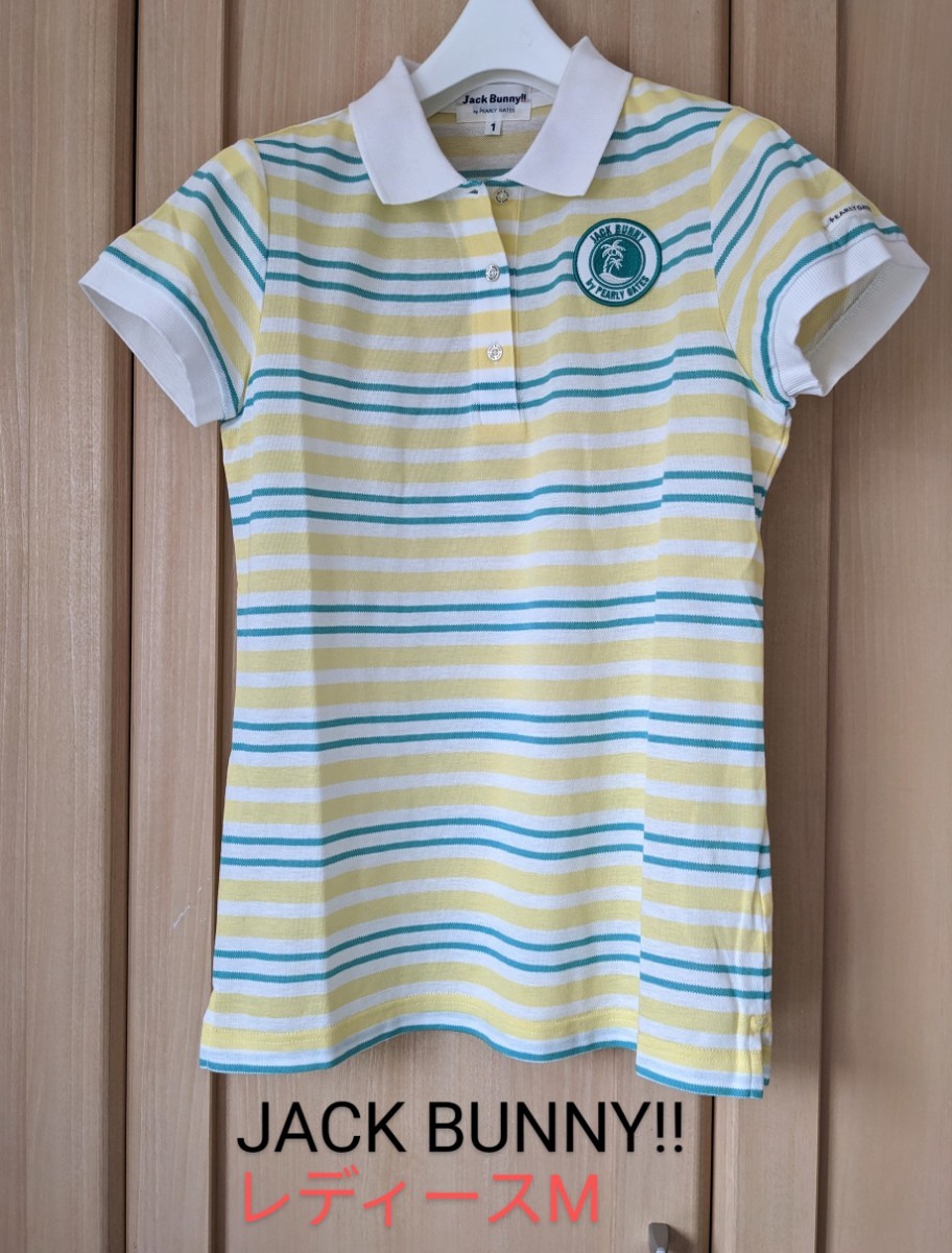 - JACK BUNNY !! レディース1 ジャックバニー 半袖 カノコ ポロシャツ ブランドロゴ刺繍 ホワイト ボーダー M相当 日本製 正規品
