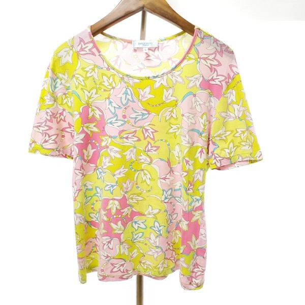 > #anc エミリオ・プッチ EMILIOPUCCI Tシャツ L 黄色 ピンク 半袖 柄 イタリア製 レディース [822621]