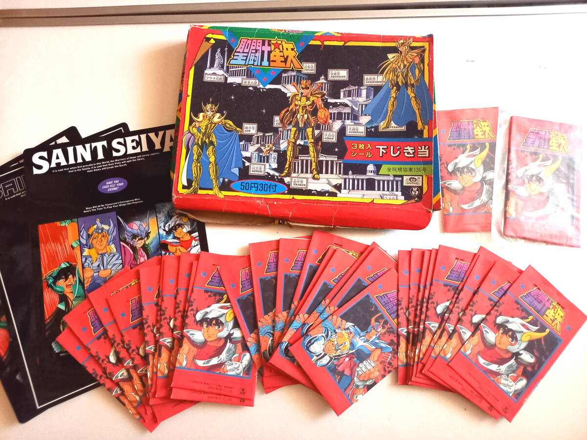 - 未開封 聖闘士星矢 アマダ 引き物シール 丸昌 ステッカー ビックリマン さん家祭り シール横丁 当時物 保管品 駄菓子屋 あたりつき 下敷き