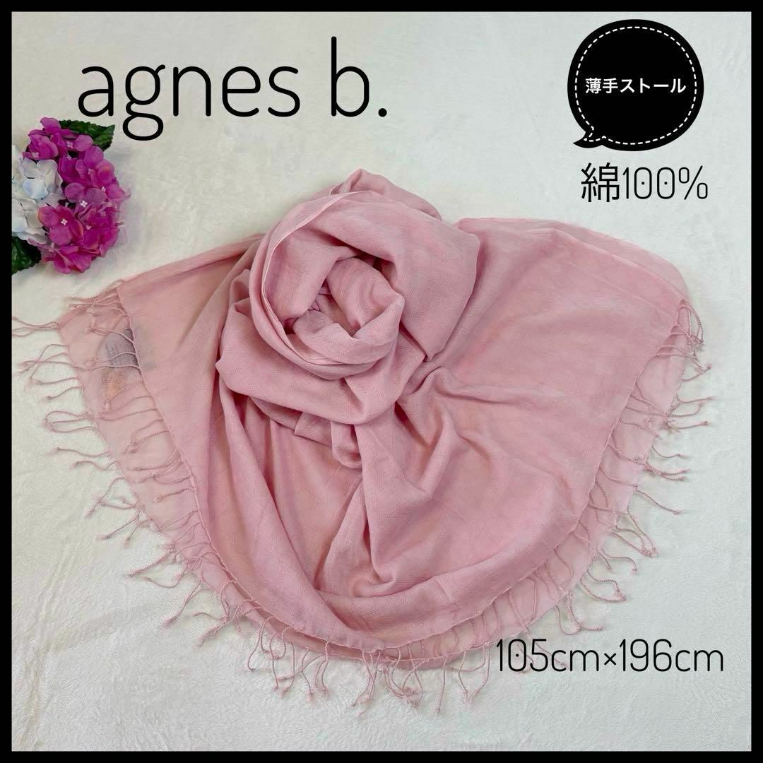 - アニエス・ベー 薄手ストール フリンジ付き 綿100% ピンク クリーニング済み