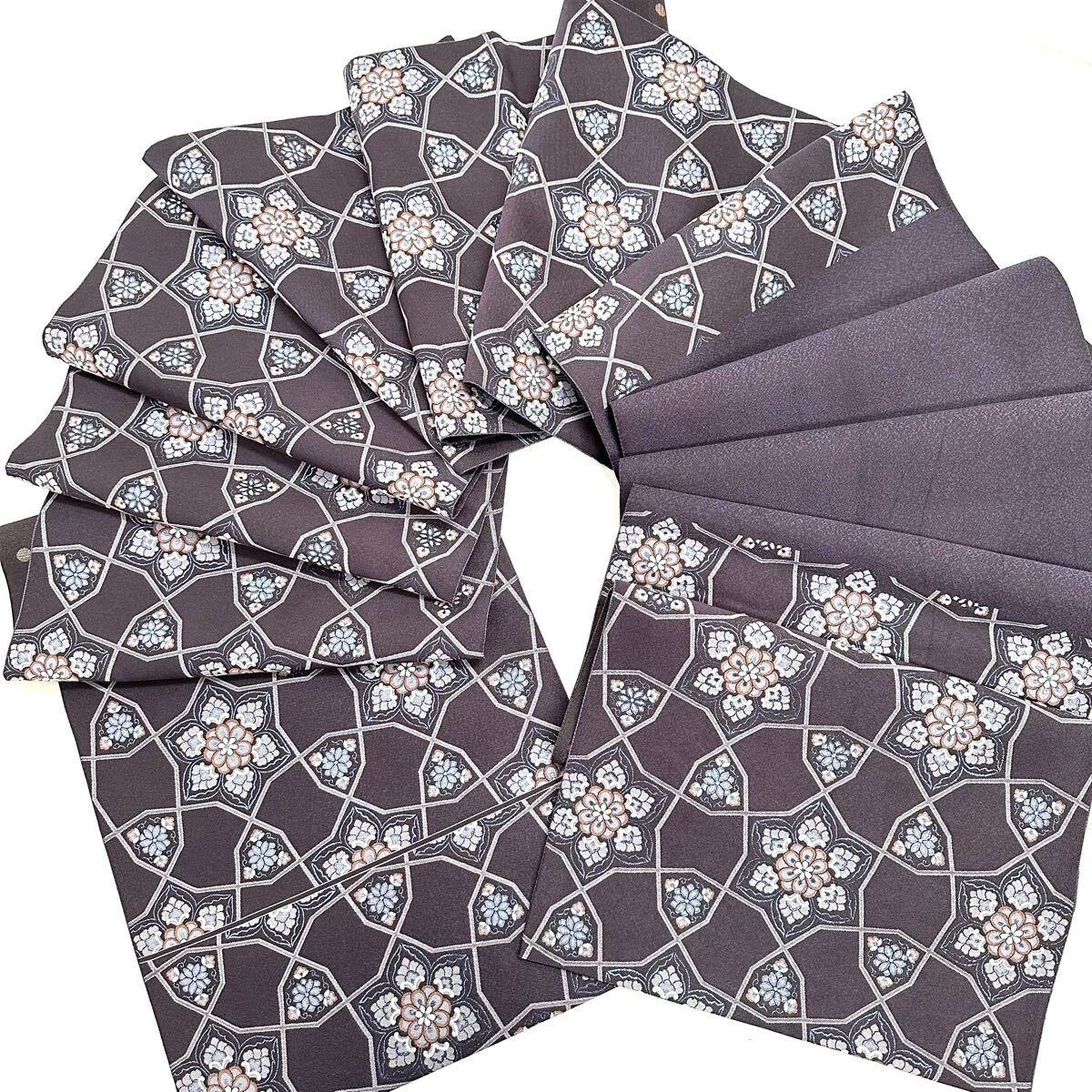 - 【七福】c640 逸品 高級品 正絹 袋帯 六通 華文 麹塵染 となみ帯 豪華
