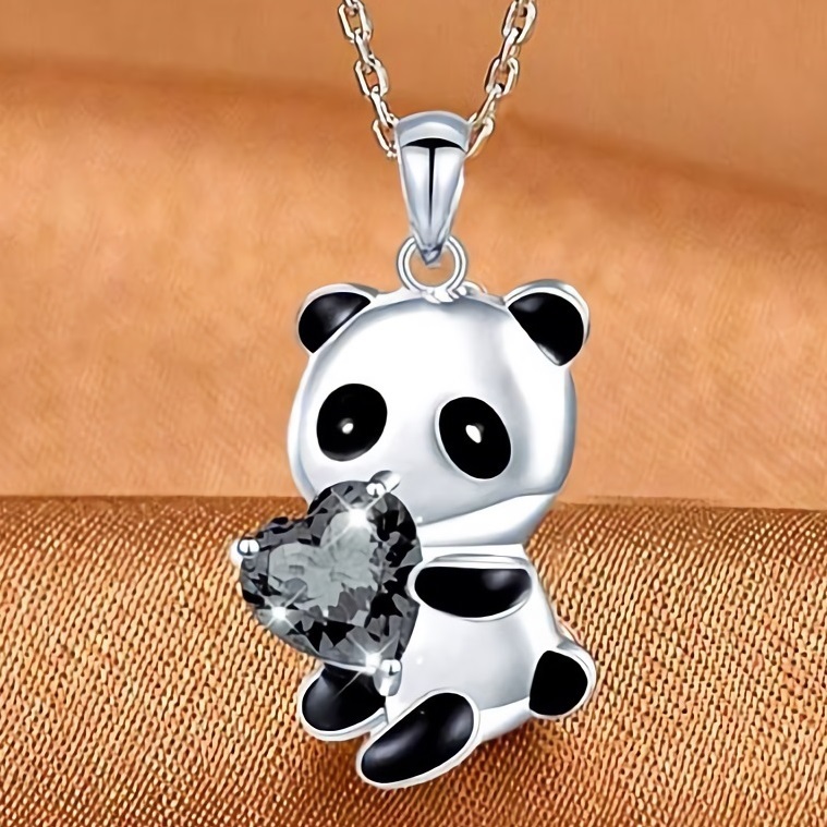 - 新品★送料無料★パンダの贈物ハート 黒金剛石ダイヤ プラチナ仕上925シルバーペンダント誕生日プレゼント旅行夏海連休ギフト国内発送