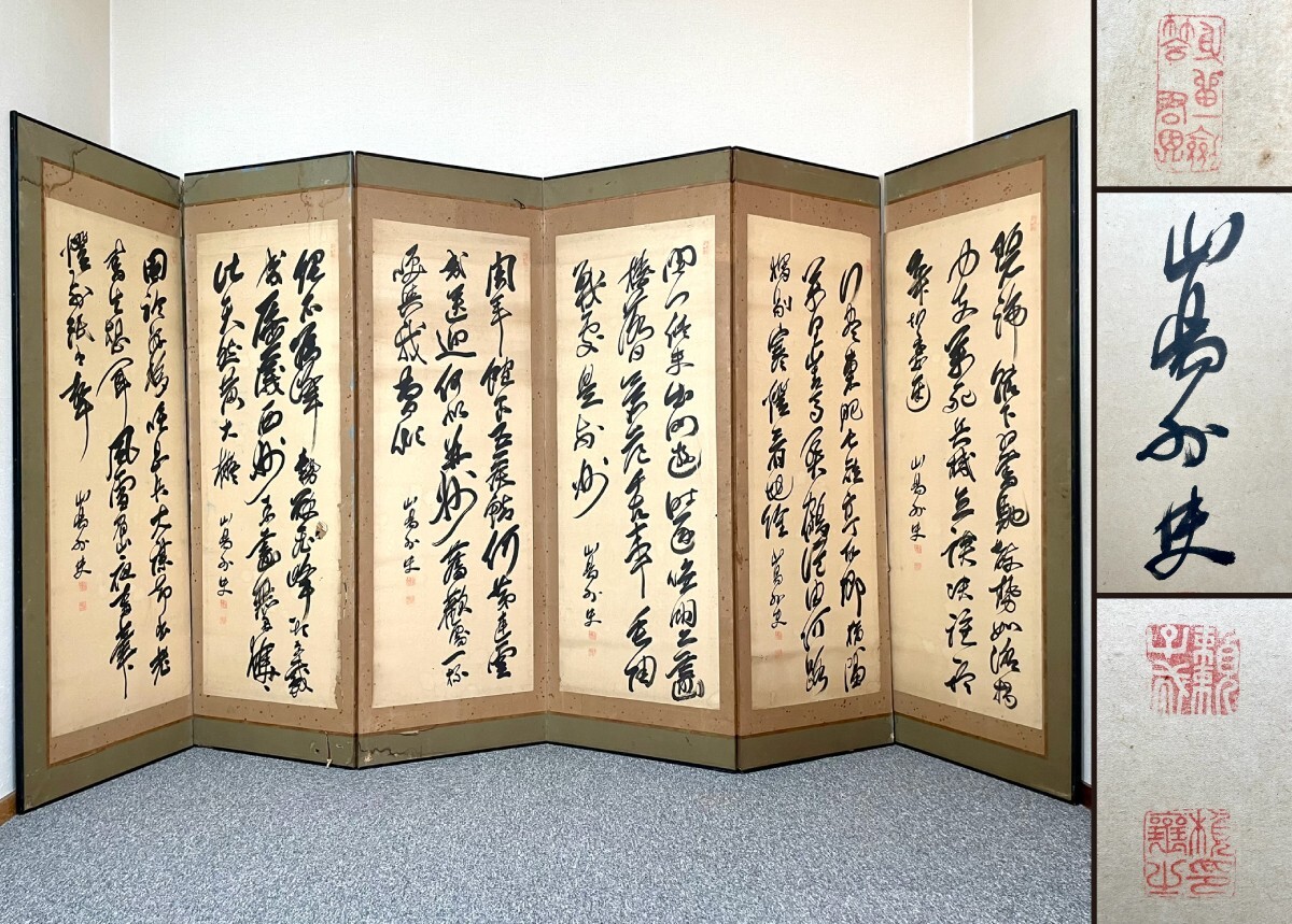 - A226【真作】 頼山陽 書貼交図 六曲屏風 六曲半双屏風 時代屏風 間仕切 半双 折畳 折り畳み 衝立 つい立 背景