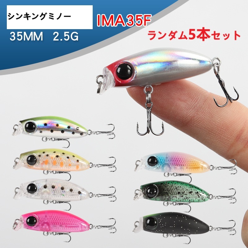 - 激安セール!ランダム5色 送料無料・マイクロスローシンキングミノー35S 5色セット メバリング