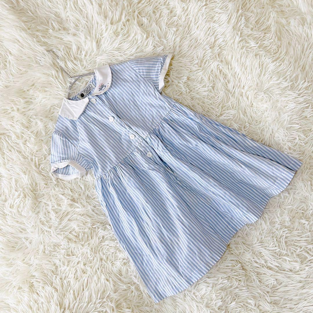 - 《ブリアン》 (5) ストライプコットンワンピース 花柄刺繍 日本製 清楚