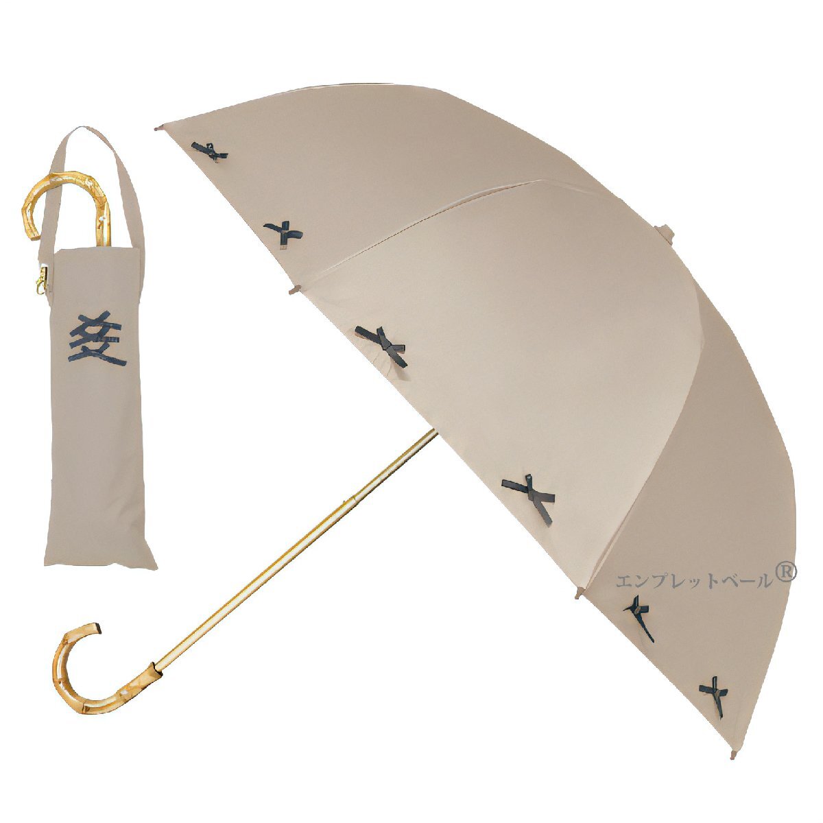 > まるいシルエット 完全遮光 薄型 2段 折りたたみ傘 晴雨兼用 リボン アイスグレージュ×チャコールグレー 親骨50cm 広げたサイズ直径77cm