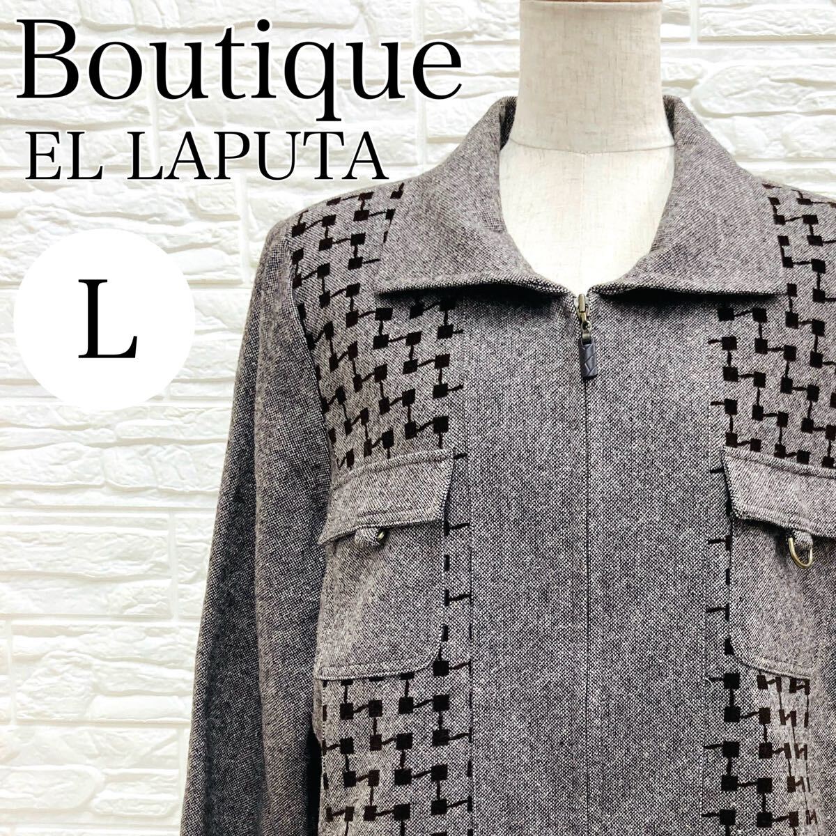 > 【A3932】 Boutique EL LAPUTA Lサイズ トップス ジャケット 羽織り アウター グレー(灰) ジップアップ 胸ポケット 長袖 襟付き ドロスト