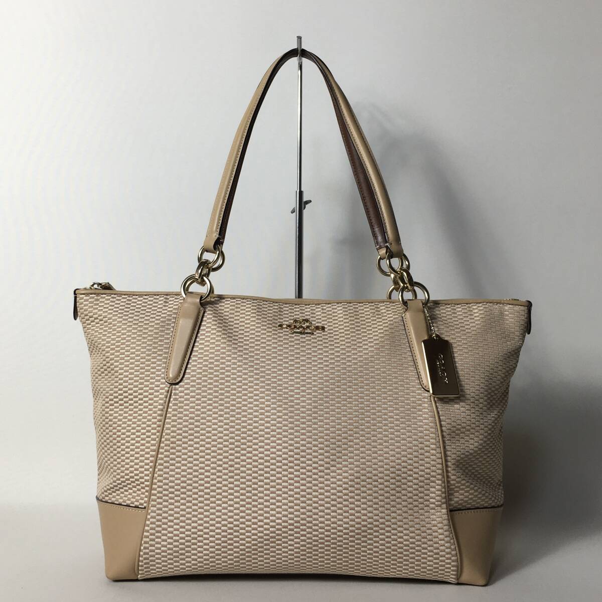 - 76B226|美品|コーチ トートバッグ キャンバス レザー ベージュ