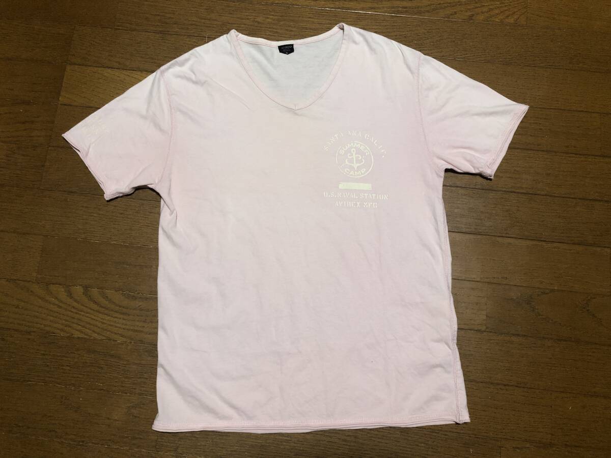 - ★即決★AVIREX アヴィレックス★VネックTシャツ★ピンク★Mサイズ★プリントT★★穴開き有★ミリタリーシャツ★ステンシル★送料230円★