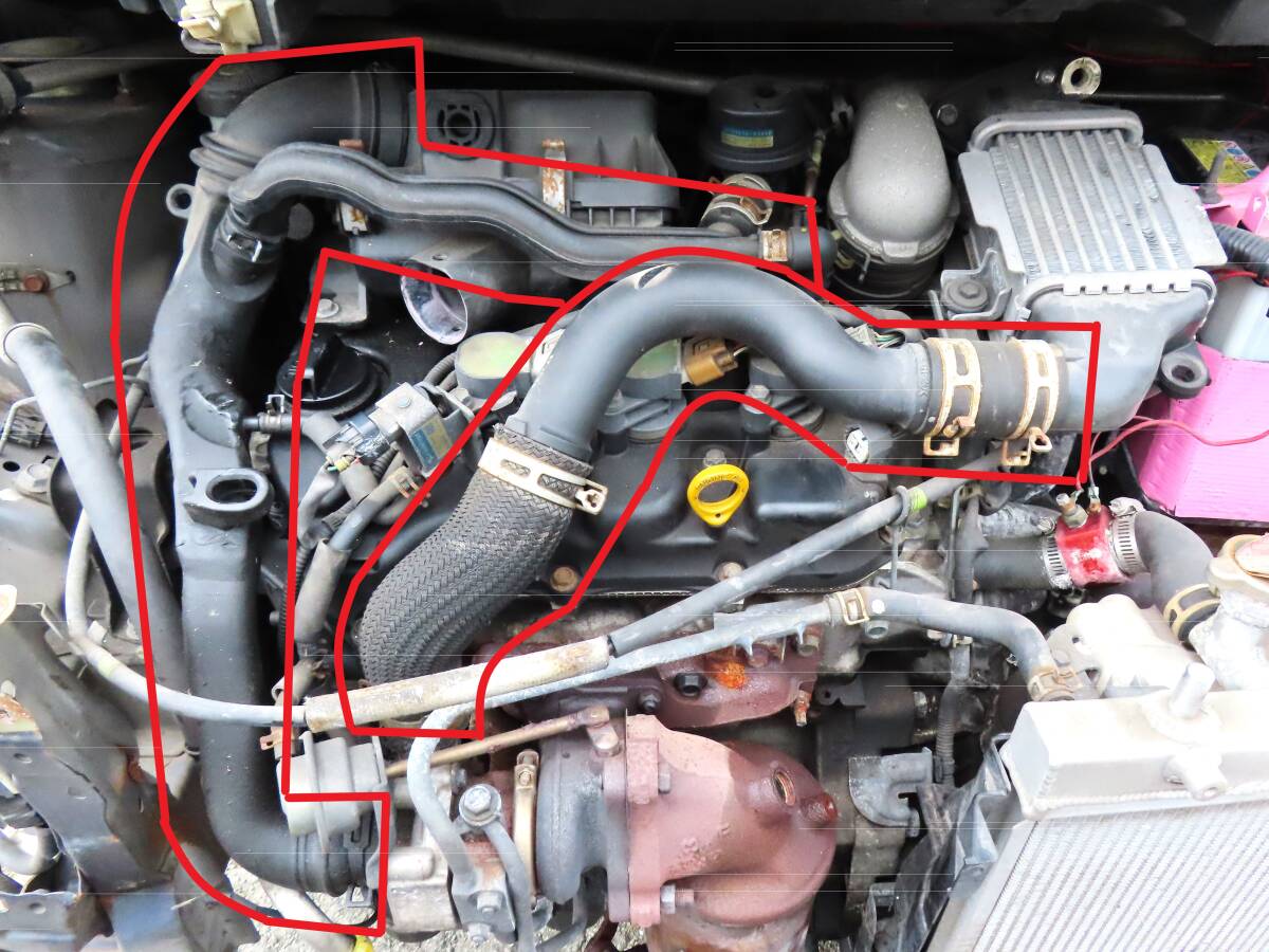 - H20 CBA-L375S L385S タント カスタム TANTO 前期 KF-DET 純正 ターボ~インタークーラー エアークリーナーBOX ダクトパイプ 配管 /91225km