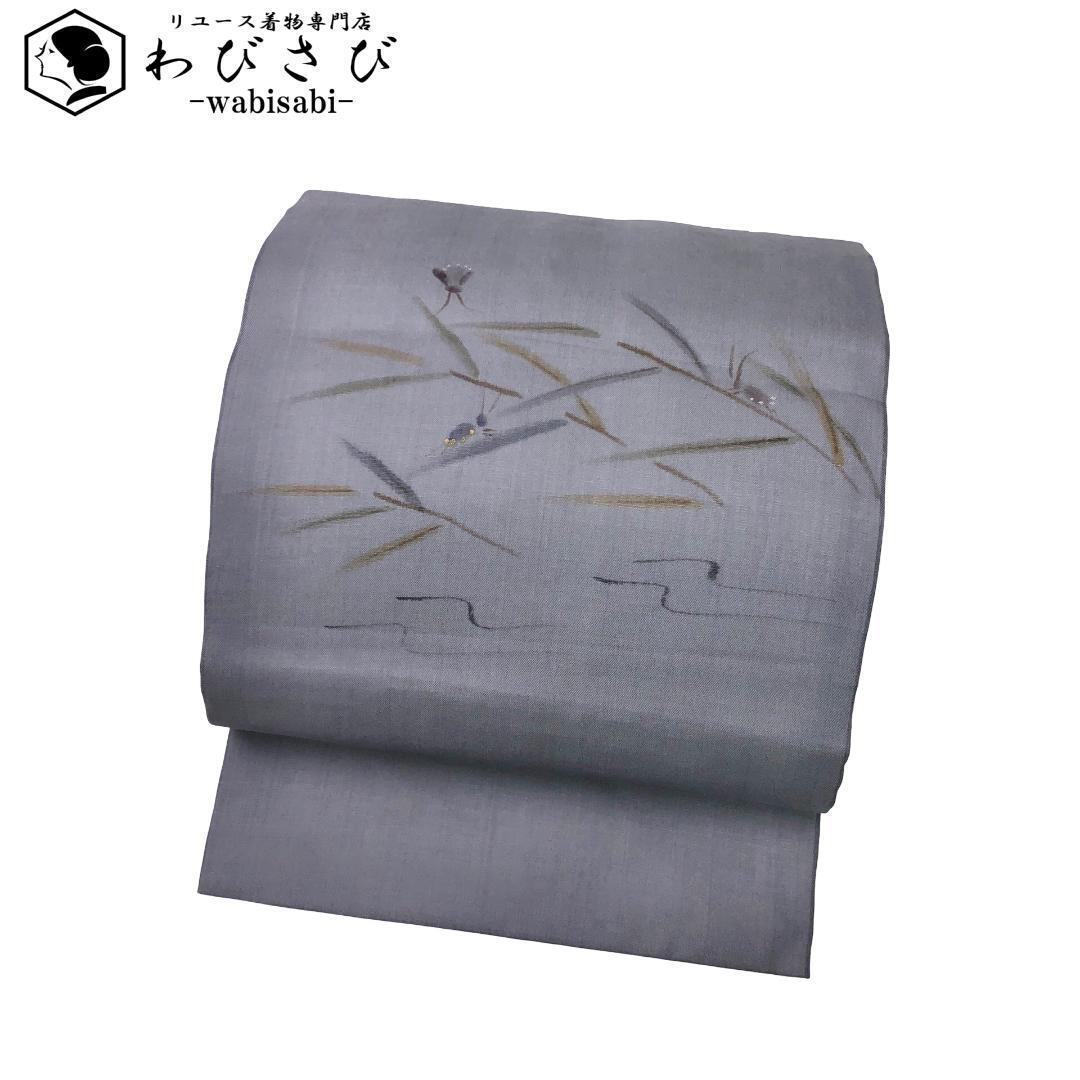> 夏帯 名古屋帯 川辺の蛍 紫鼠色 金銀彩 O-5320 着物 きもの kimono 和服 和装 中古 リサイクル着物 【送料無料】