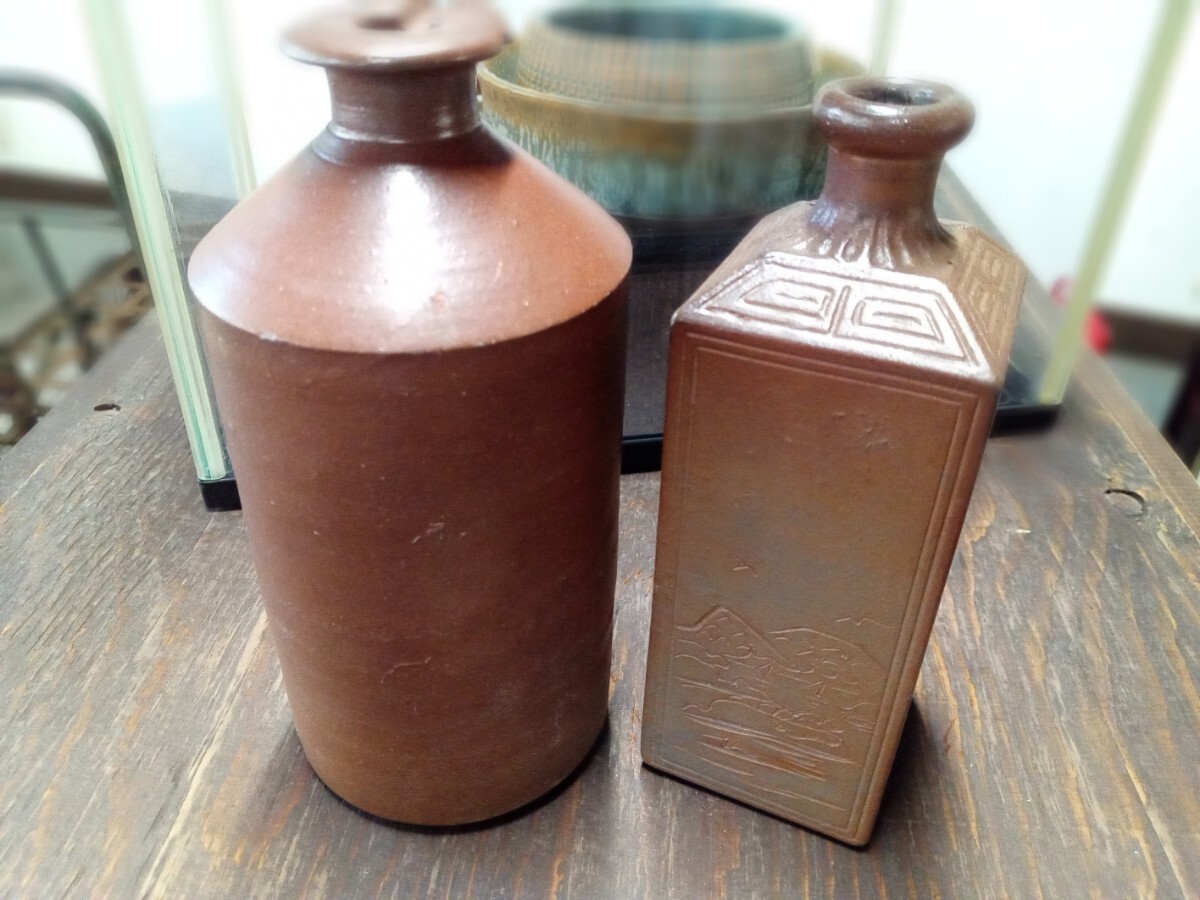 - ⑰鞆の津 鞆の浦 保命酒角瓶 古瓶 2個にて 古物 レトロ 古備前 備後
