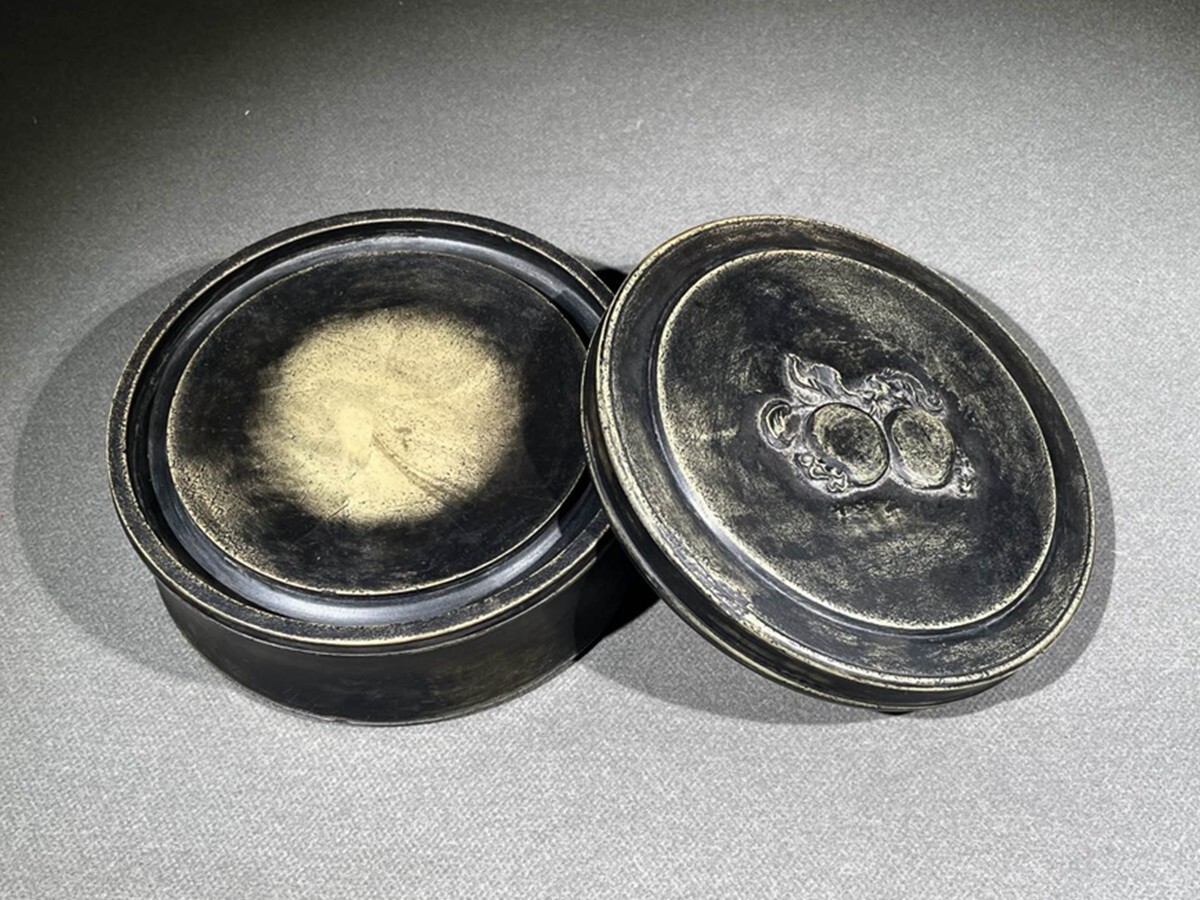 - 【瓏】緑端石彫 多子多福 石榴文房端渓蓋硯 西莊居士銘 清時代 手彫り 文房四寶 書道具 古硯 端硯 古美術 骨董品 蔵出