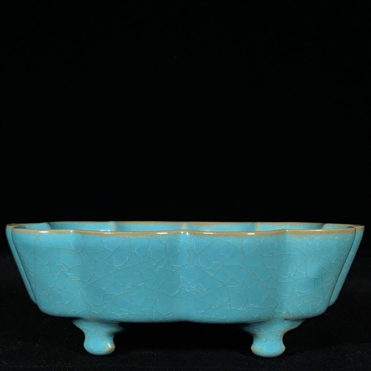 - ▽鴻▽ 宋 古陶瓷品 汝窯 冰裂紋 花口洗 陶藝 古賞物 古董品 時代物 稀少珍品 中国古玩 中国古美術
