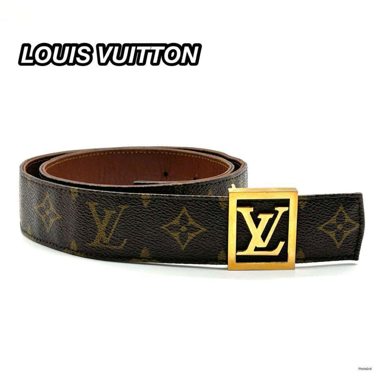 > 希少 ルイヴィトン LOUIS VUITTON ベルト モノグラム ゴールド金具 サンチュール LVロゴバックル スクエア金具 穴5つ ブラウン