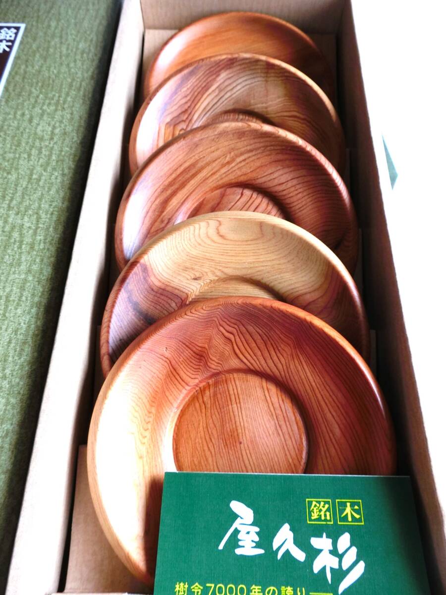 - 屋久杉 茶托 5枚 煎茶 銘木 希少木材 新品・未使用 天然木 無垢 茶道具