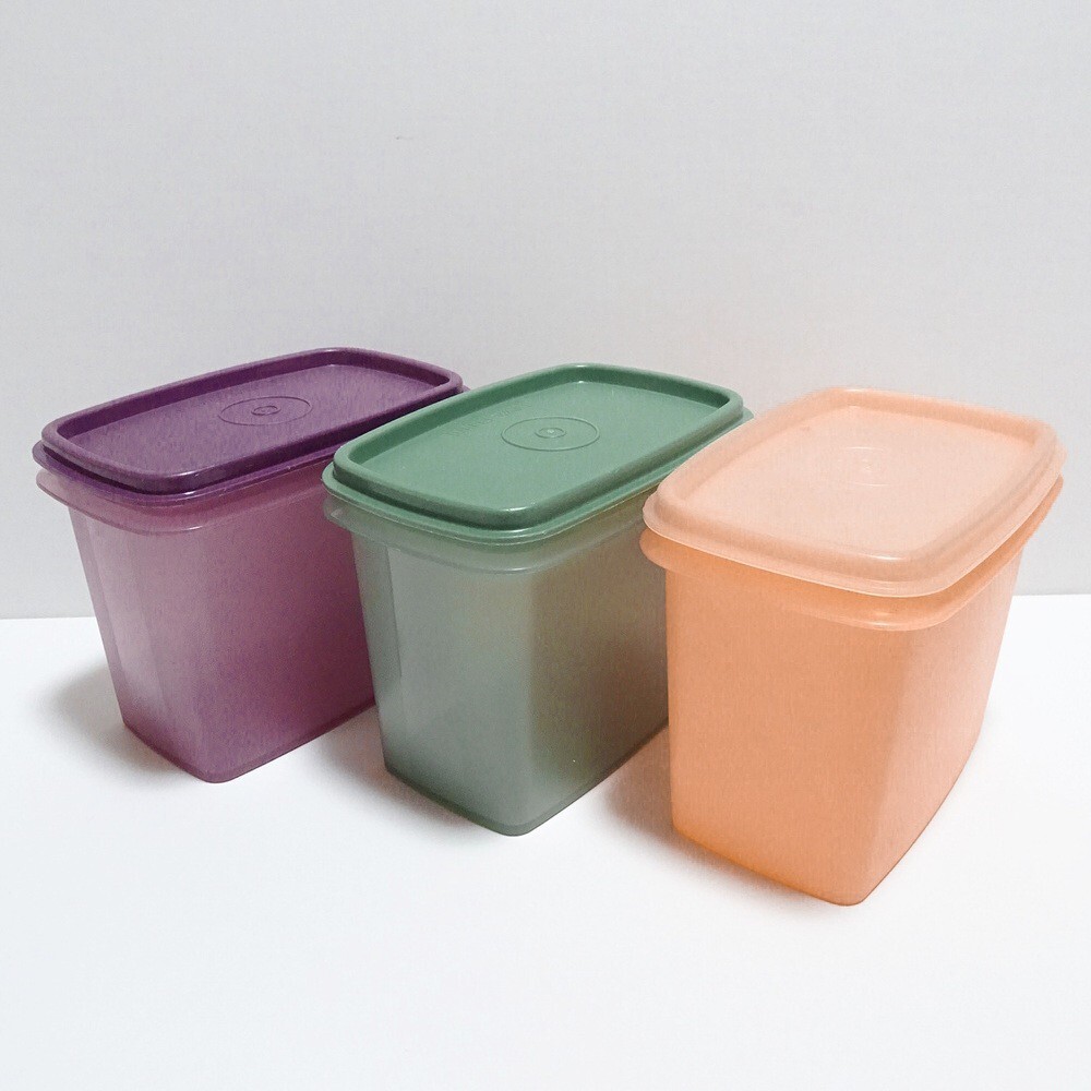 - 2455 送料無料 3点セット タッパーウェア 長方 深型 840ml パープル グリーン オレンジ 約14.5×9.5×11.5cm Tupperware 保存容器