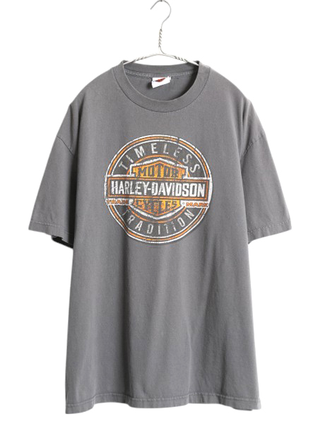 > ハーレー ダビットソン 両面 プリント Tシャツ メンズ XL 程 古着 オフィシャル ヘビーウェイト スカル バイク グラフィック 大きいサイズ