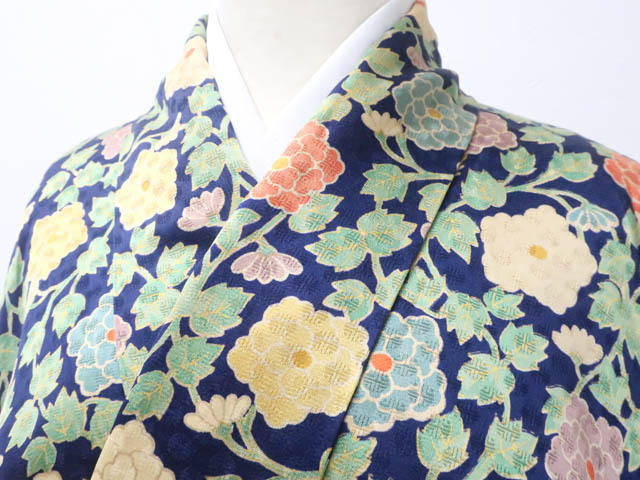 > 《古美術京松》リサイクル着物 小紋 花文 正絹 身丈約166cm 裄丈約68cm sok7z07-26