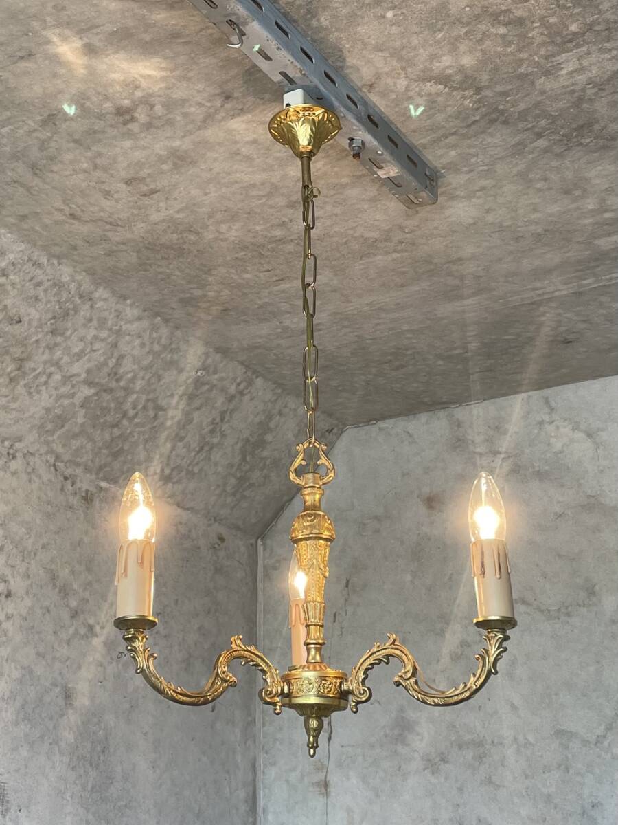 - 23. フランス アンティーク シャンデリア 3灯 キャンドル ライト 吊り下げ シーリング ブロンズ 店舗 什器 美容室 カフェ