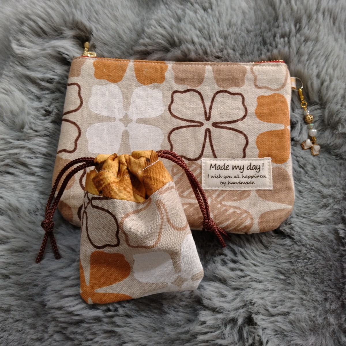 - ★北欧風★ファスナーポーチとミニ巾着★ポケットティッシュ余裕サイズ