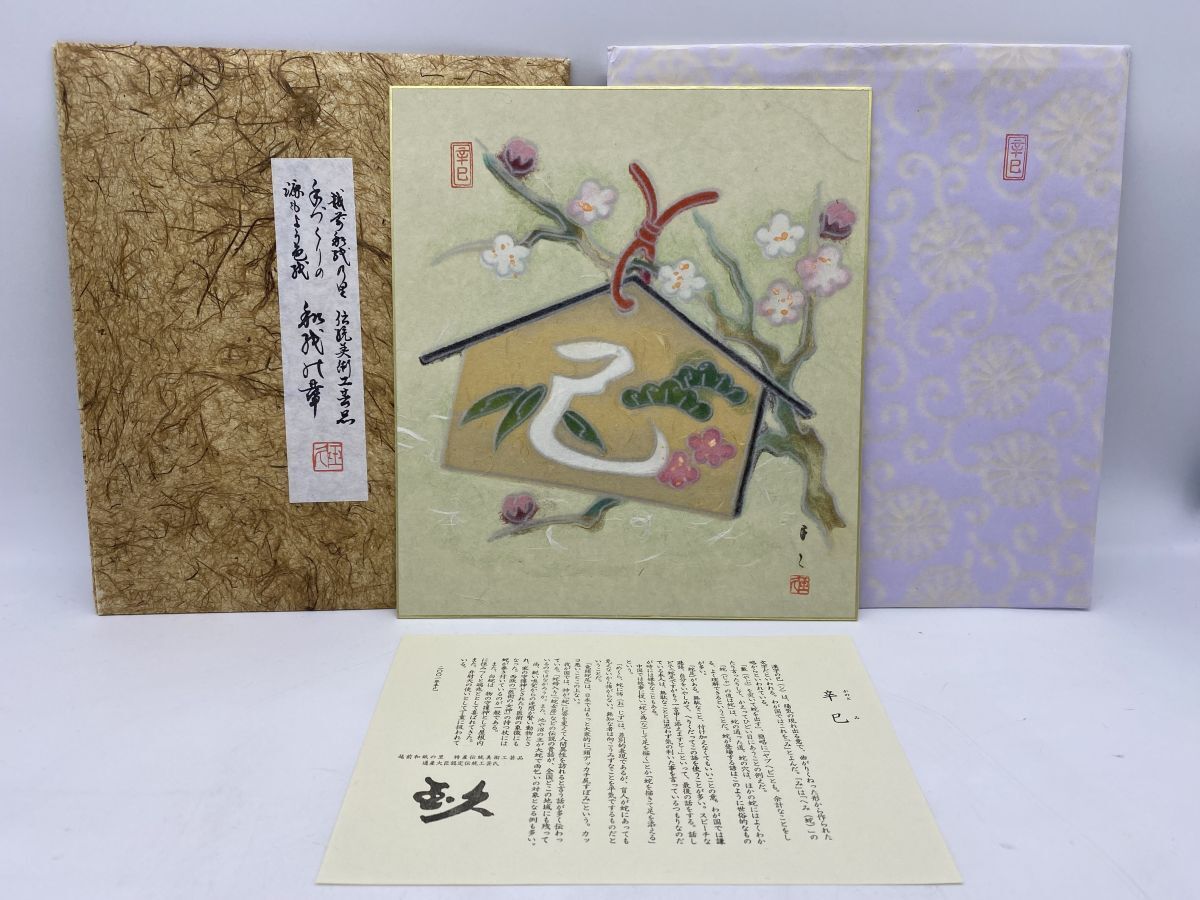 - 玉久『辛巳 招福巳』 平成十三年 干支 越前和紙 手作り源もよう色紙 杉皮 別漉手漉和紙 伝統美術工芸品 金彩 色紙(10722)