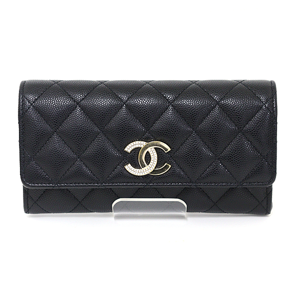 - CHANEL シャネル ミディアム フラップ ウォレット キャビアスキン ブラック マトラッセ 二つ折り財布 ココマーク【中古】
