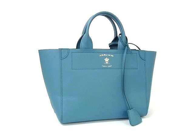 > 超美品 ADMJ エーディーエムジェイ トートバッグ ハンドバッグ - ブルー系 ゴールド金具 レザー レディース【本物保証】
