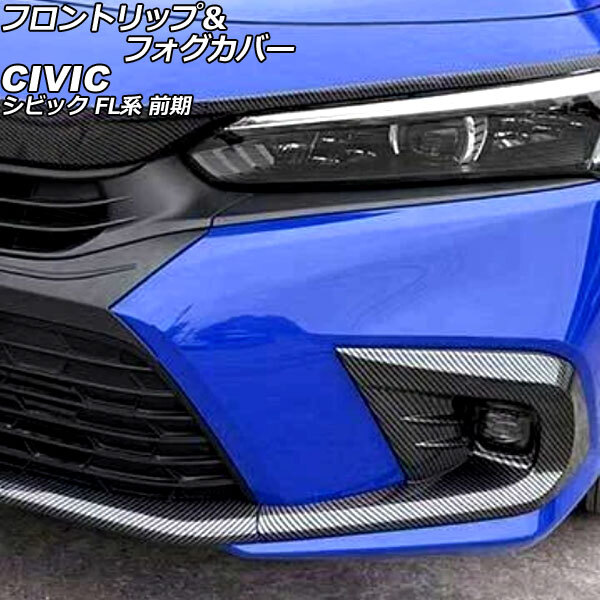 > フロントリップ&フォグカバー ホンダ シビック FL系 前期 2021年09月~2024年08月 ブラックカーボン ABS製 入数:1セット(3個)