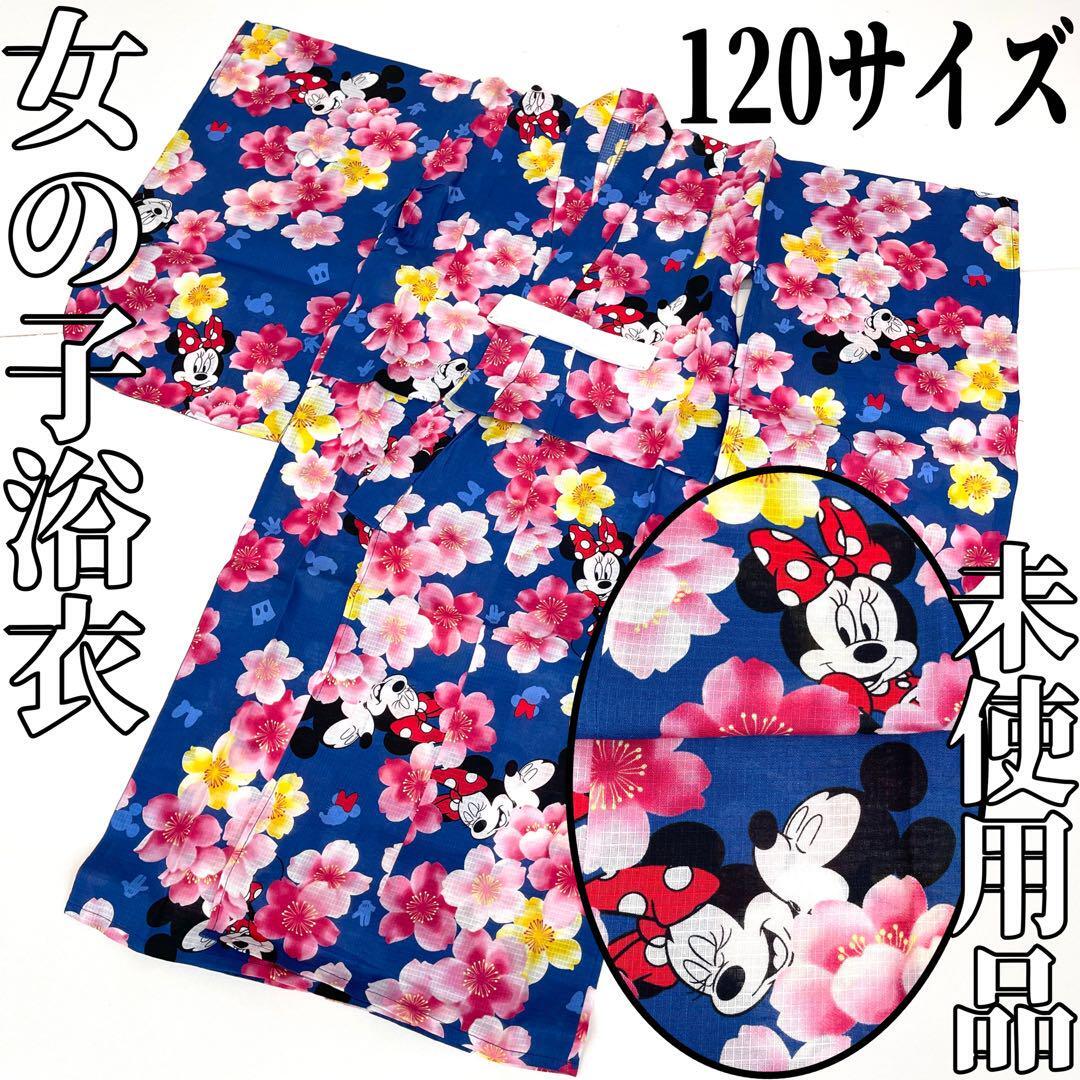- 【着物と帯 時流】Y◆新品 女の子浴衣◆120㎝ ミッキー&ミニー 綿紅梅